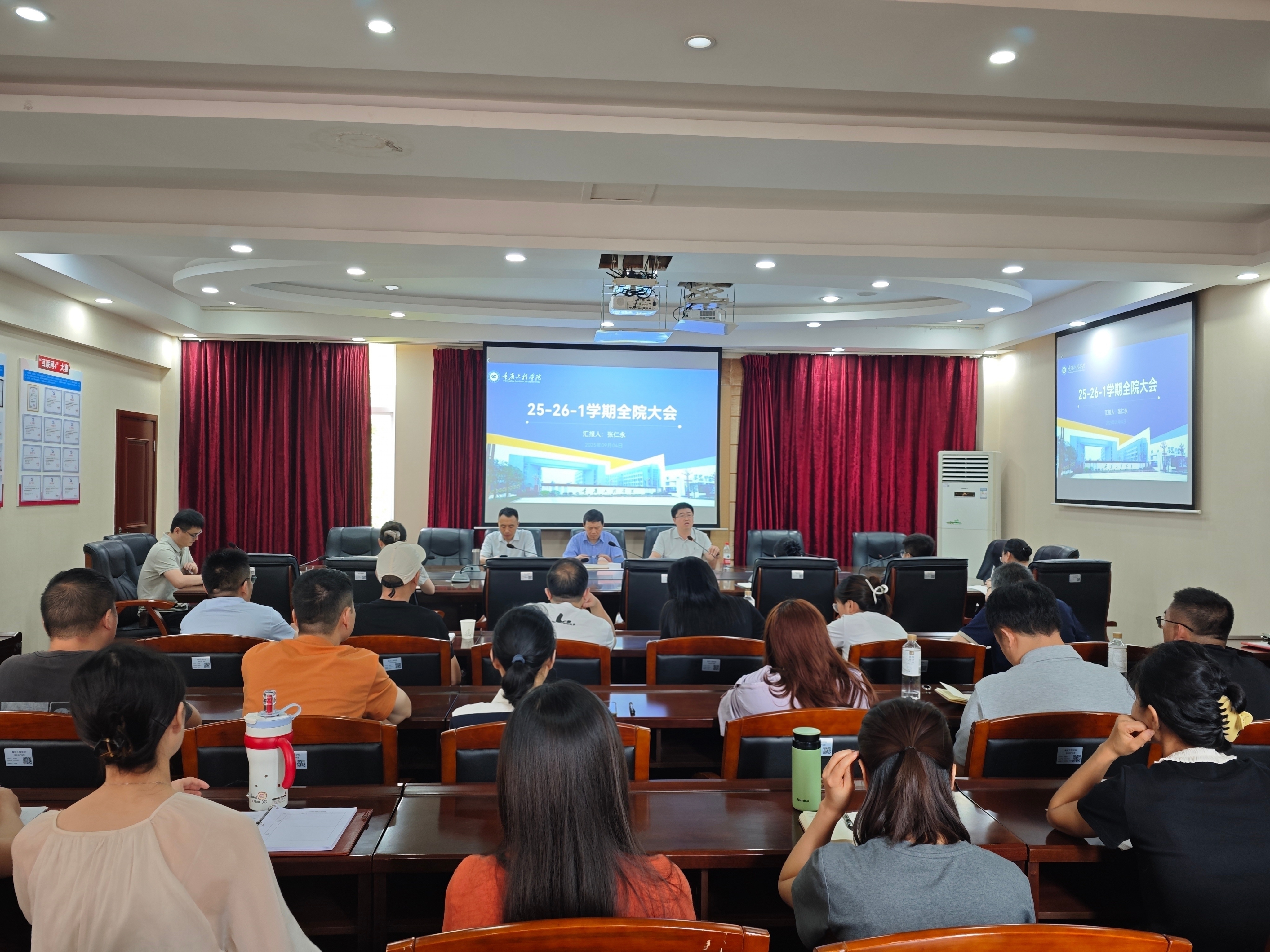 2025年9月4日,电子信息学院在办公楼212会议室召开2025-2026-1期初全体教职工大会,会议由学院党总支书记谭思宇主持。学院全体院领导、教职工参加本次会议。