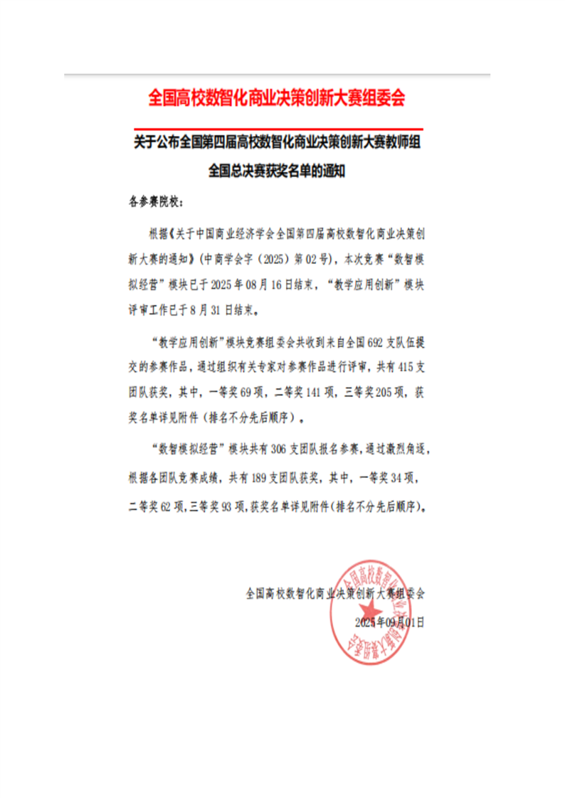 管理学院教师在“全国第四届高校数智化商业决策创新大赛教师组全国总决赛”中获荣佳绩