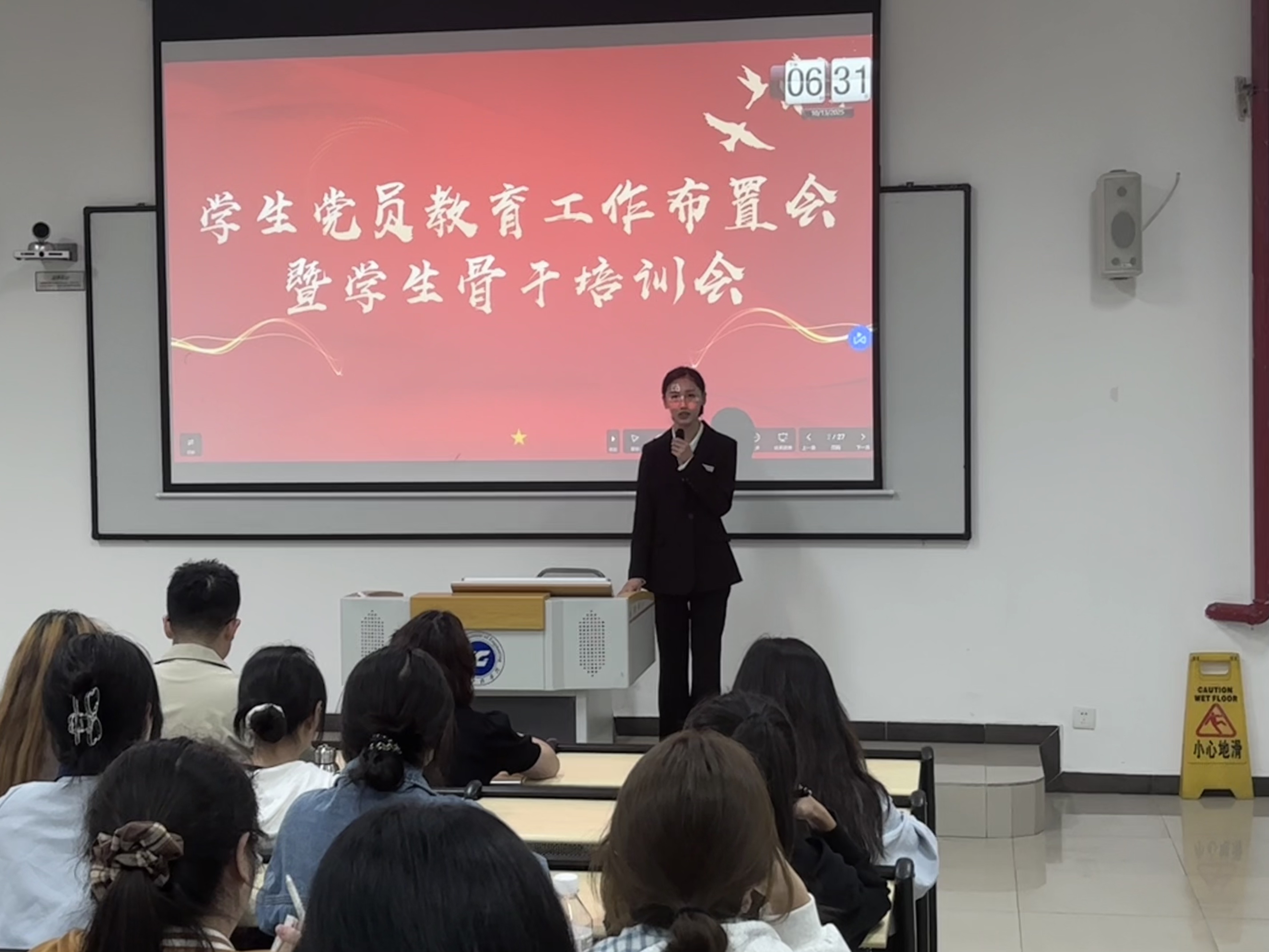 本网讯(图/文 邓涵尹 学生党教中心)为增强数字经济与管理学院学生党员实践教育建设,深入学习宣传贯彻党的精神,引领新时代青年,组织动员学生党员,以实际行动书写热血青春。10月13日晚,数字经济与管理学院党教分中心于第六教学楼开展“学生党员教育工作布置会暨学生骨干培训会”学习活动。本次活动由我们党教分中心办公室干事余亚兰主持,共计50余名学生骨干参与。