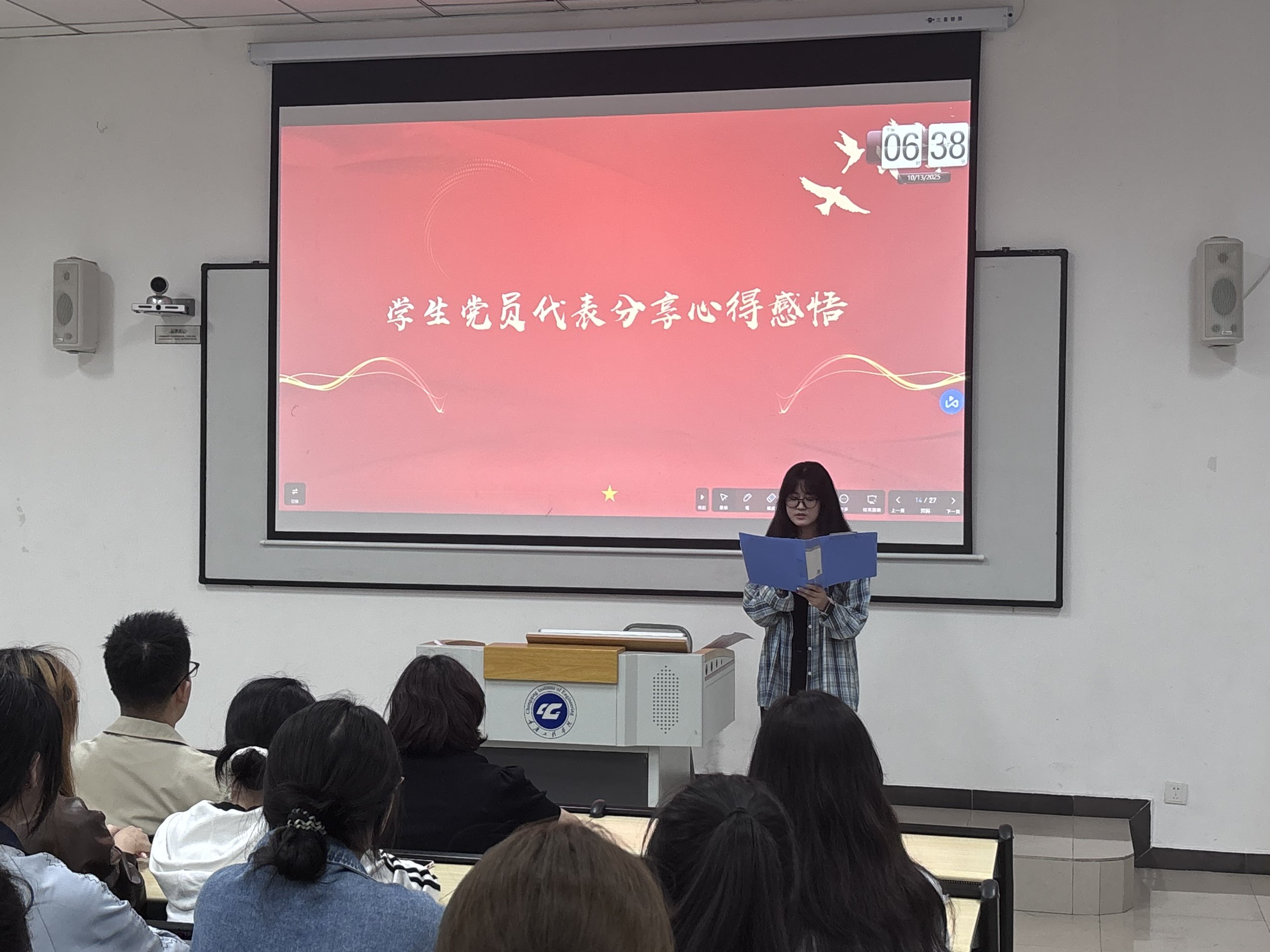 接下来党教分中心负责人王露霖和培训实践部负责人柳诗羽分别为大家分享了心得感悟和“大学生微党课”进班级活动相关注意事项。不仅全方位地贯彻了理想信念,加强了支部建设,探索创新学生基层党组织活动的形式和内容,也积极调动了广大学生党员的积极性、创造性。