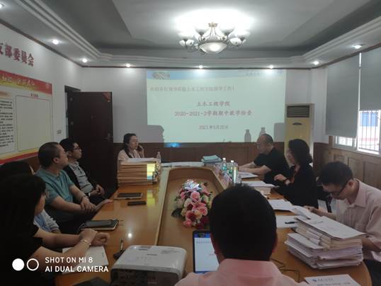 本网讯(文/图 土木工程学院 苏娜)为全面了解二级学院本学期教学运行情况,促进各教学单位加强日常教学管理,规范教学运行,保障教学秩序,进一步深化教育教学改革,提升教学质量,学校开展了期中教学检查工作,5月20日上午10:40,教务处第一检查组成员到土木学院212会议室开展期中教学检查工作,土木学院院长雷江、教学副院长汪金能、各系主任、学院教务科人员参加了本次会议,会议由汪金能副院长负责主持。