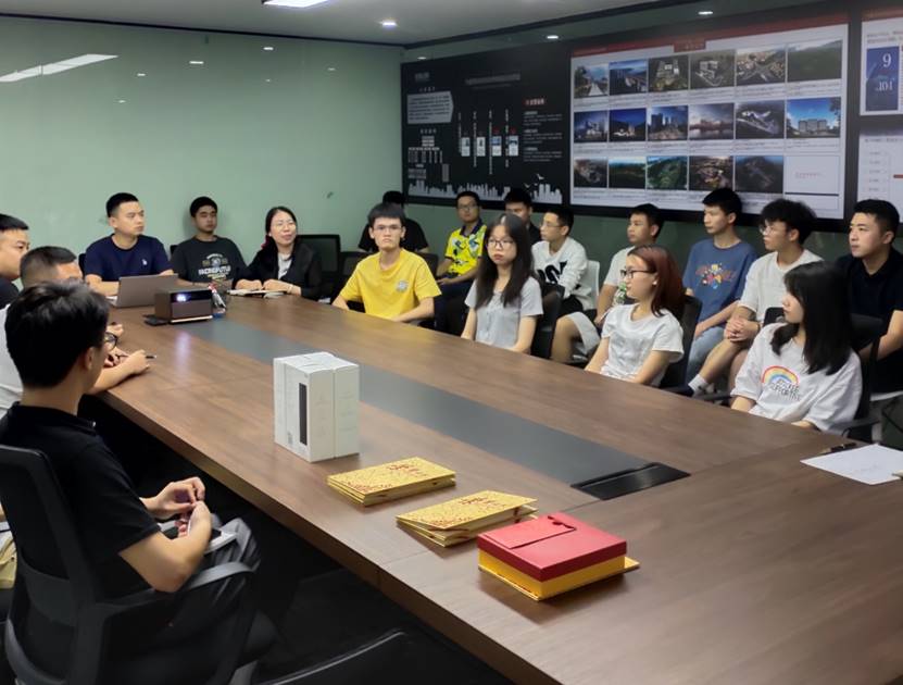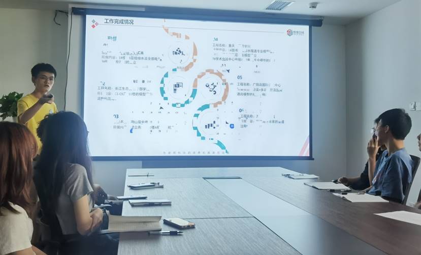 周鹏程总经理表示从7月20日11名重工学子作为实习生来到公司,从最开始的小白到慢慢开始入门到逐渐成长,从工作状态渐入佳境到给公司创造价值,从成果的粗犷型到模型的精细化程度逐渐提高,证明本次校企合作模式较为成功,他提出将与重工持续长久的校企合作进行人才培养作为公司一个非常重要的发展战略。随后11名实习生逐一进行总结汇报。唐露说在本次实习过程中培养了在建筑和结构建模过程中解决各种专业能力的思维,包括建模思维从平面到里面,项目思维从局部到整体,并对自己的职业规划给出非常清晰的定位:从建模逐渐转到BIM漫游动画再到项目汇报和管理。刘泽星作为38天全勤的机电组实习生共完成6个项目,他表示个人收获非常非常大,每天都在思考,从开始的愚昧山峰、绝望之谷到开悟之坡的邓宁-克鲁格心理效应不断认清自己改变自己,不断巩固专业基础知识,对自己即将从事的专业方向有了比较清晰的认识。公司智能建造部负责人任冲表示在他是实实在在体会到了每位实习生对自己的定位逐渐清晰和准确,成长非常之快,专业技能得到大大的提升。陈珂良总经理表示本次实习的每位学生个性都比较鲜明,愿大家心中有理想,38天的共事能成为大家人生中一片美好的回忆,欢迎重工实习生常回公司看看。
