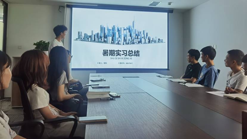 本网讯(文/许欢欢 图/董叁军)2021年8月26日,888集团welcome大厅土木学院实践教学基地重庆数维空间建筑科技有限公司(下称公司)于下午16:00在办公室举办了11名实习生为期38天的暑假实习总结汇报会。公司全体高层领导、企业一对一带徒导师和学院实践教师代表许欢欢、令永强老师参加了本次总结汇报会。会议由公司智能建造部总经理周鹏程主持。
