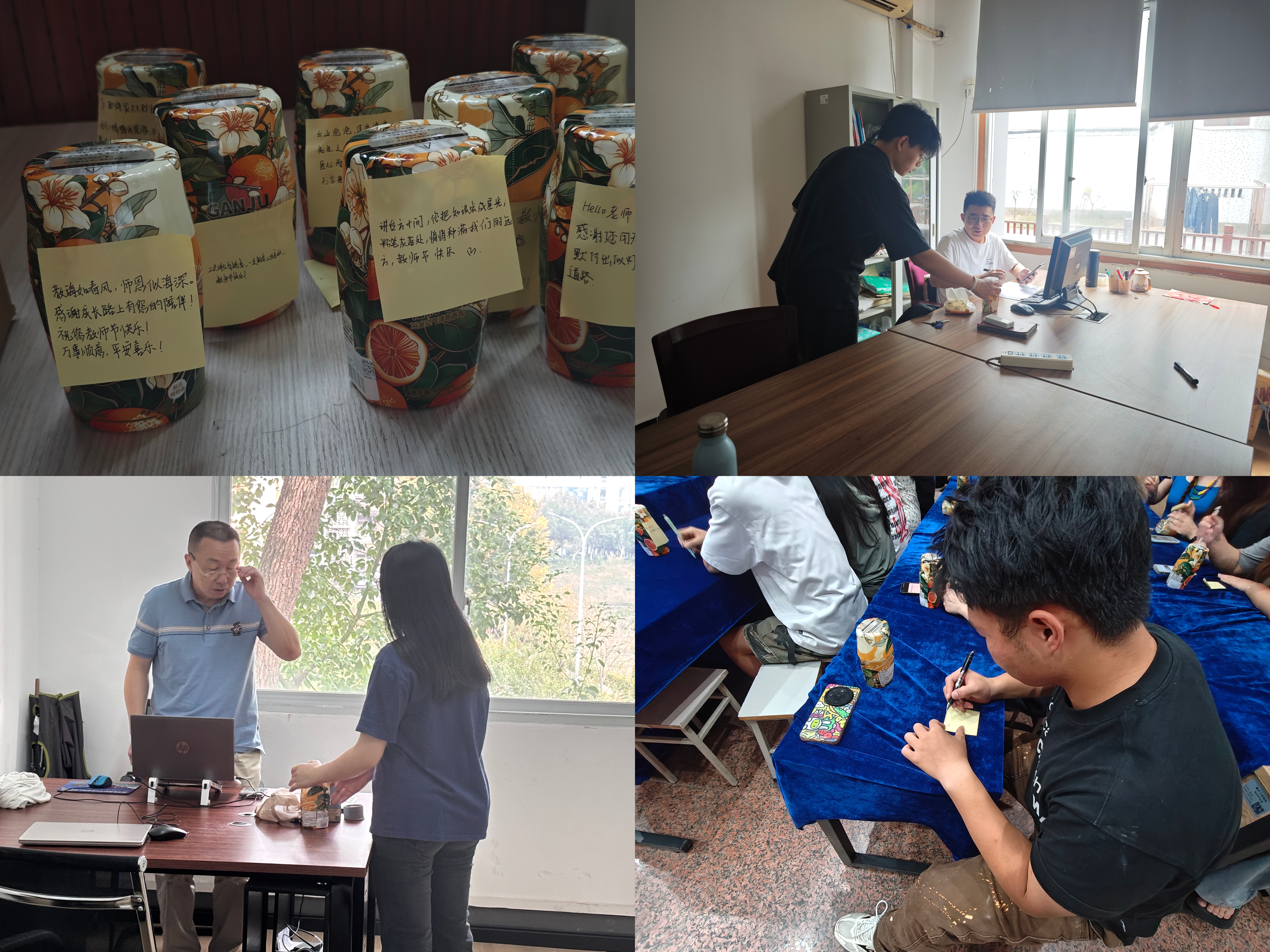 活动现场,学生们围绕“感恩教师”主题积极参与创作。大家拿起画笔,细致勾勒校园里的熟悉场景与教师授课时的专注形象;同时在便利贴上亲笔书写祝福,既有对教师课堂上耐心答疑的感谢,也有对成长路上悉心指引的铭记,每一笔、每一划都饱含对教师的真挚情感。待创作环节结束后,学院学生党员实践教育中心的工作人员化身“心意传递者”,将附有祝福便利贴的香氛逐一送到学院教师手中。这份兼具创意与温度的礼物,让教师们在节日里收获了满满的感动。