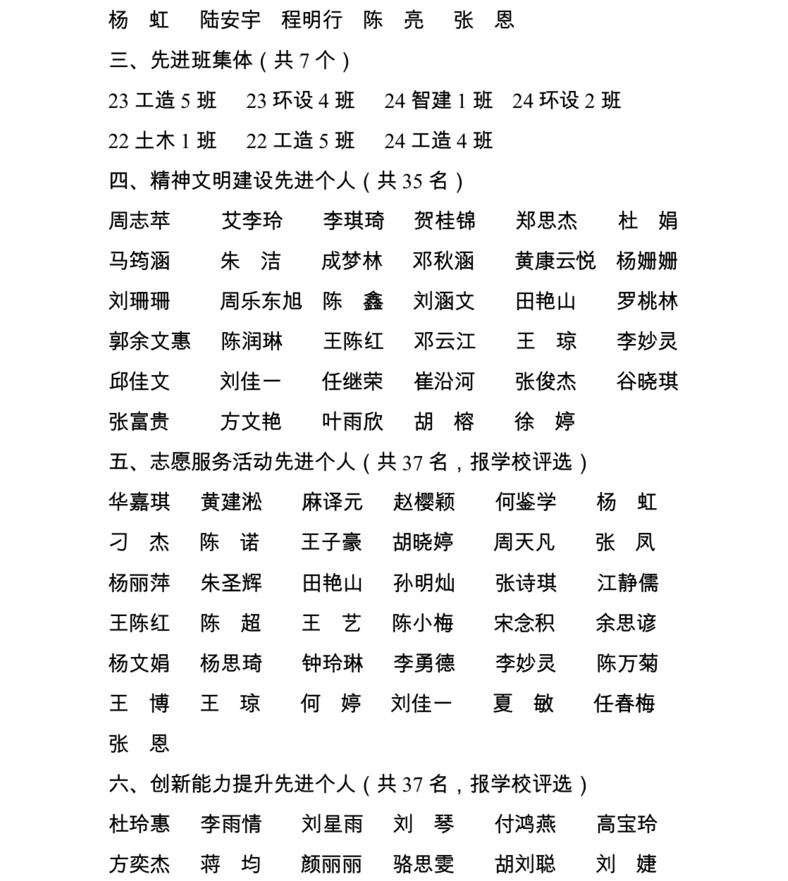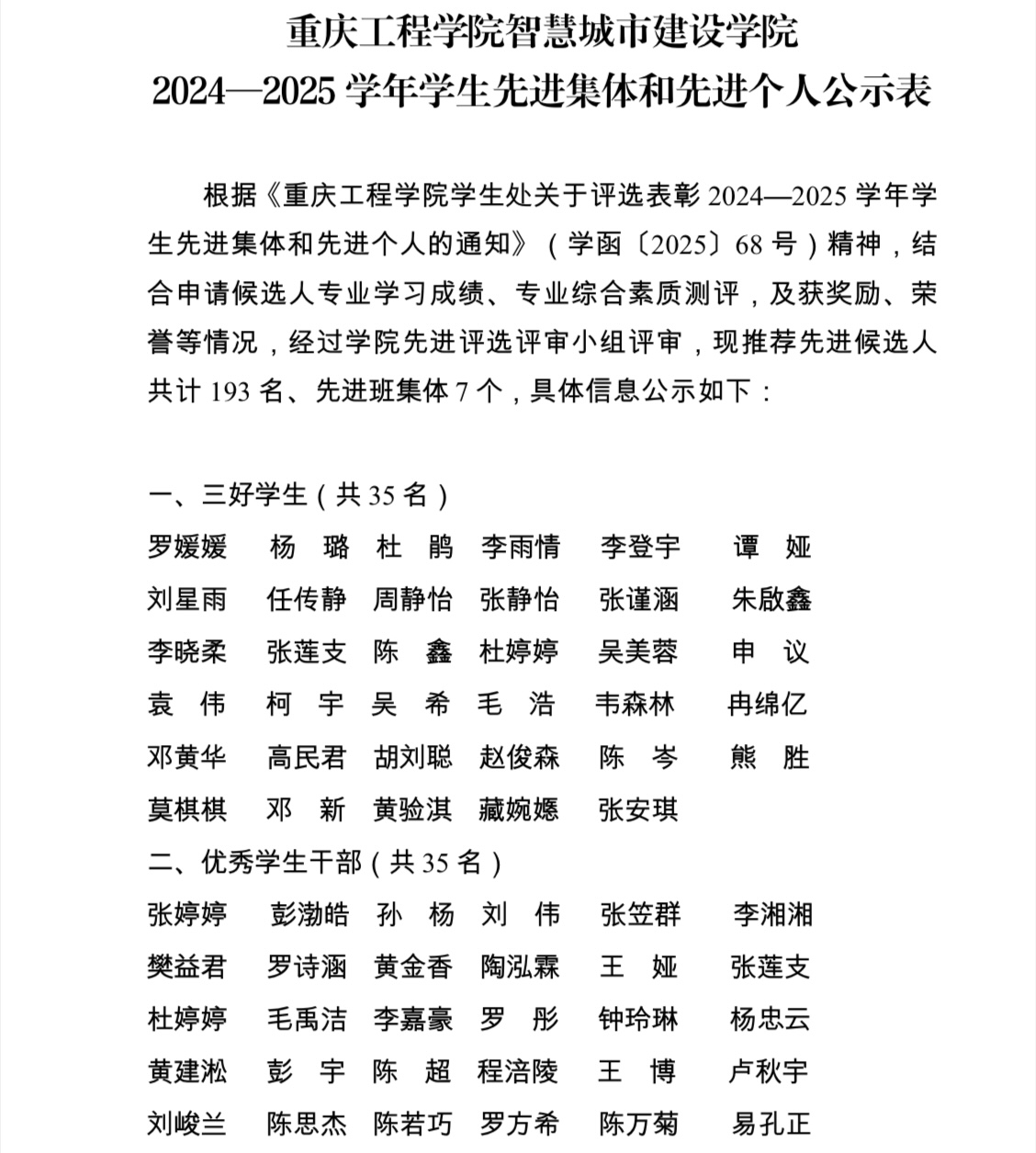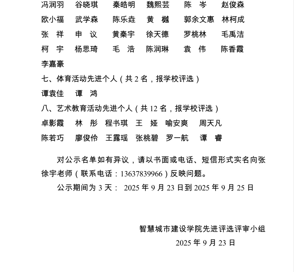 智慧城市建设学院2024-2025学年学生先进集体和先进个人公示表
