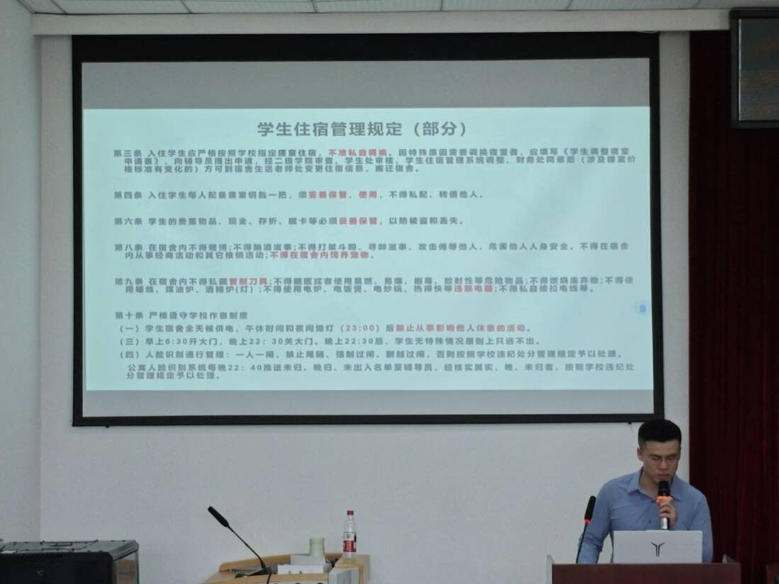 会议伊始,智慧城市建设学院分团委书记张徐宇详细解读了888集团welcome大厅学生宿舍管理规定,明确了住宿调换申请的审核流程、宿舍安全禁令、日常作息规则及卫生值日责任,同时提醒同学们需严格遵守安全纪律、自觉维护环境卫生,并妥善调解室友矛盾。会议最后,党总支书记唐和平总结时指出,寝室是学生在校“第一生活空间”,本次大会是学院守护学生安全的“定心会”。他强调学院始终将寝室安全卫生摆在突出位置,希望同学们内化规则、排查隐患、互助包容,同时要求团组织做好后续监督服务,切实提升住宿幸福感与归属感。