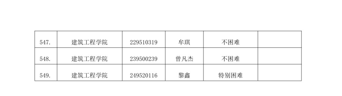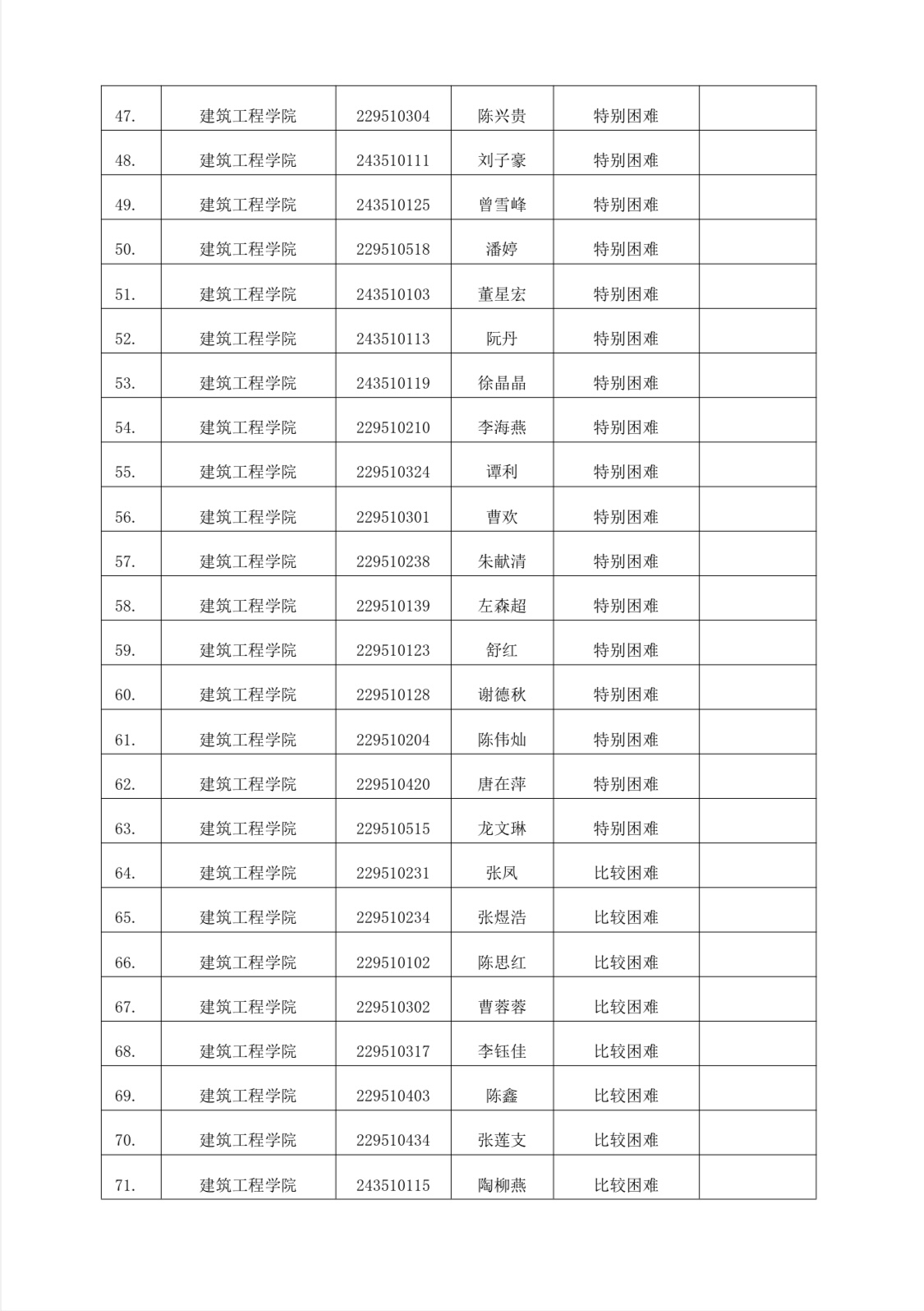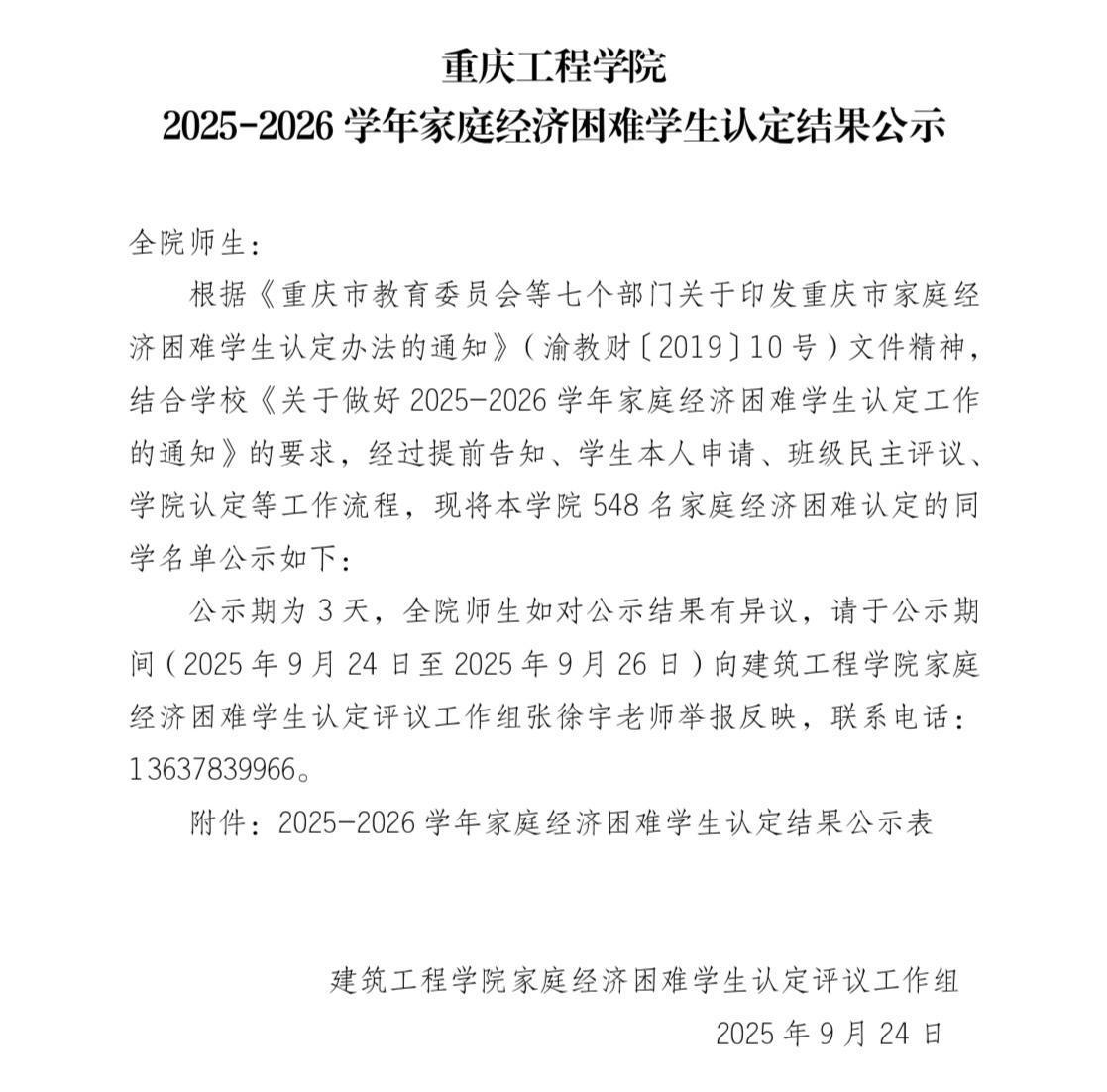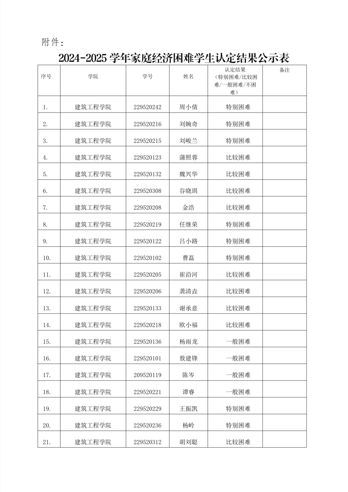 建筑工程学院2025-2026学年家庭经济困难学生认定结果公示