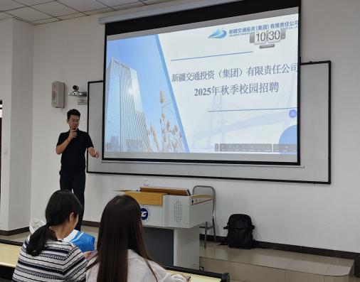 本网讯(文/图 潘南倩)9月25日上午,智慧城市建设学院在第六教学楼204教室成功举办新疆交通投资(集团)有限公司专场宣讲会,学院2026届155名毕业生到场参加。