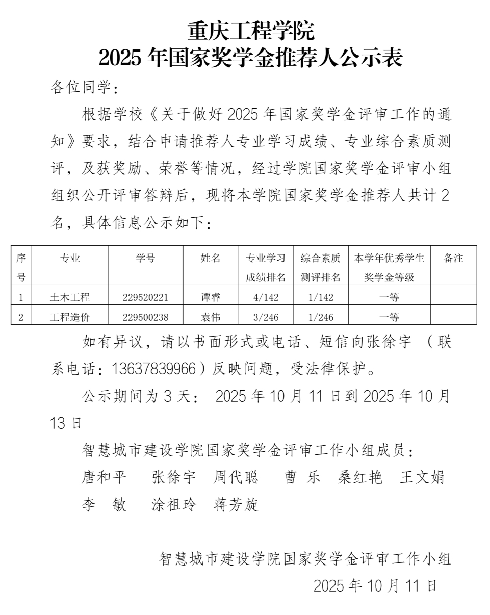 888集团welcome大厅2025年国家奖学金推荐人公示表