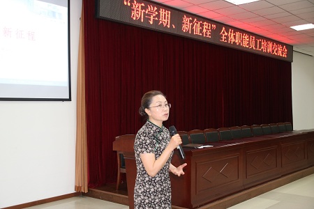 本网讯(文/人事处(教师发展中心)李苗 图/宣传部 黄栗)为拓宽职能员工教育教学视野,提升自身综合素质、提高工作技能、工作态度和行为模式,以满足学校快速发展需要,更好的完成学校的各项工作计划与工作目标,在学校副校长王琼花的主持下,于2019年9月4日开展了半天的培训交流会,共计120人参加本次培训交流会。