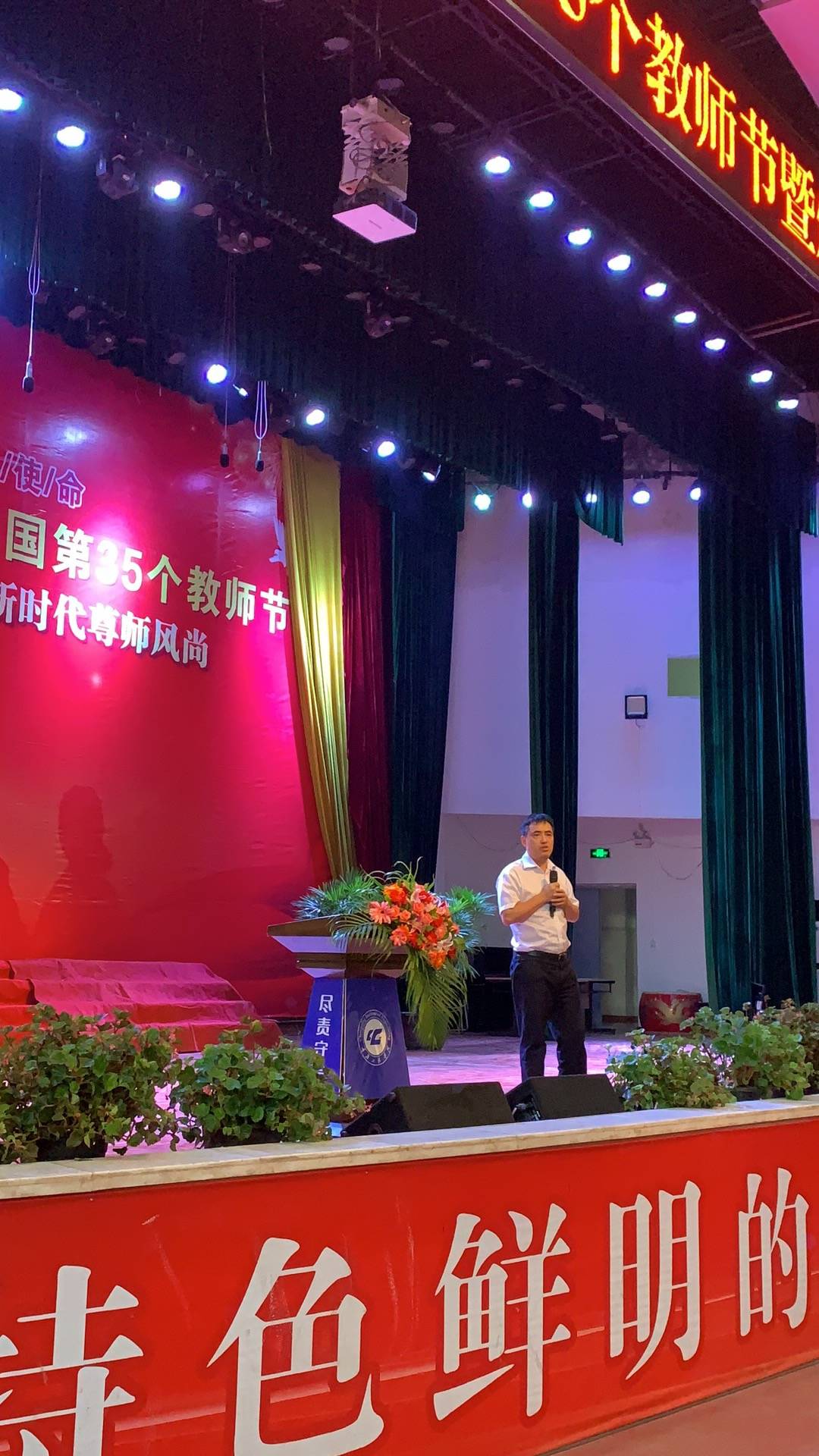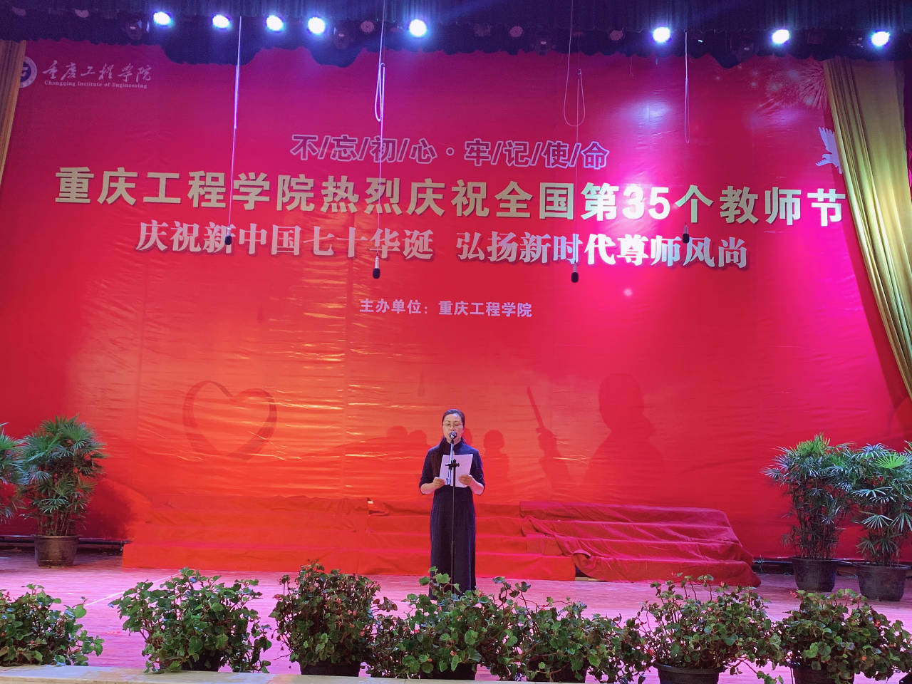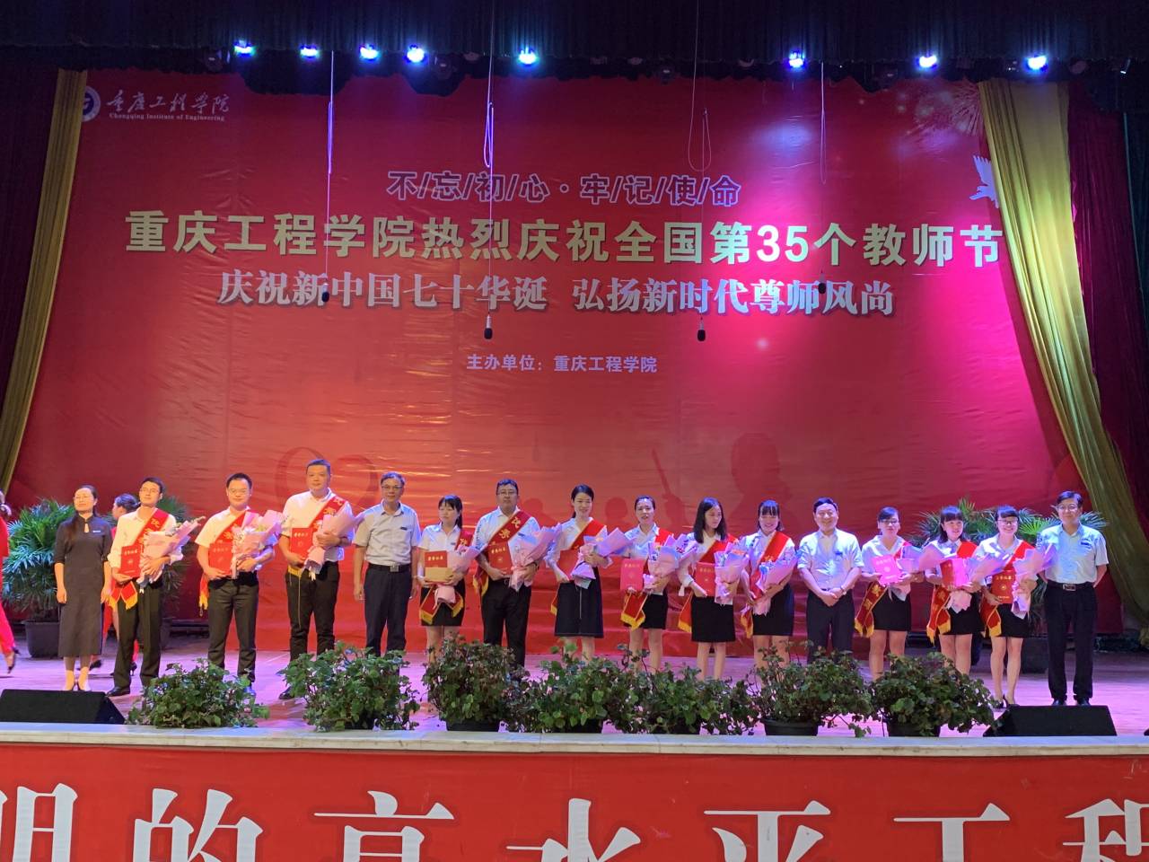 金秋九月,秋风送爽的日子,我们迎来了第35个教师节。为向辛勤耕耘的全体教职工表达衷心的感谢和崇高的敬意,进一步弘扬新时代尊师重教风尚,教书育人的园丁精神,9月10日下午,在学术报告厅,学校举办以“庆祝新中国七十华诞,弘扬新时代尊师风尚”为主题的颁奖典礼,全校逾1200名师生参加。