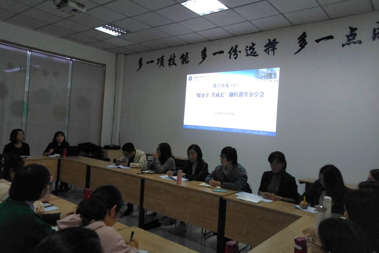 2019年10月16日下午2:00,教师发展中心组织的“悦分享.共成长翻转课堂分享会”主题教学沙龙在大学生服务中心1-3教室举行,来自土木学院、计算机学院、管理学院24位老师参加。本次沙龙由教师发展中心张晓颖主持。