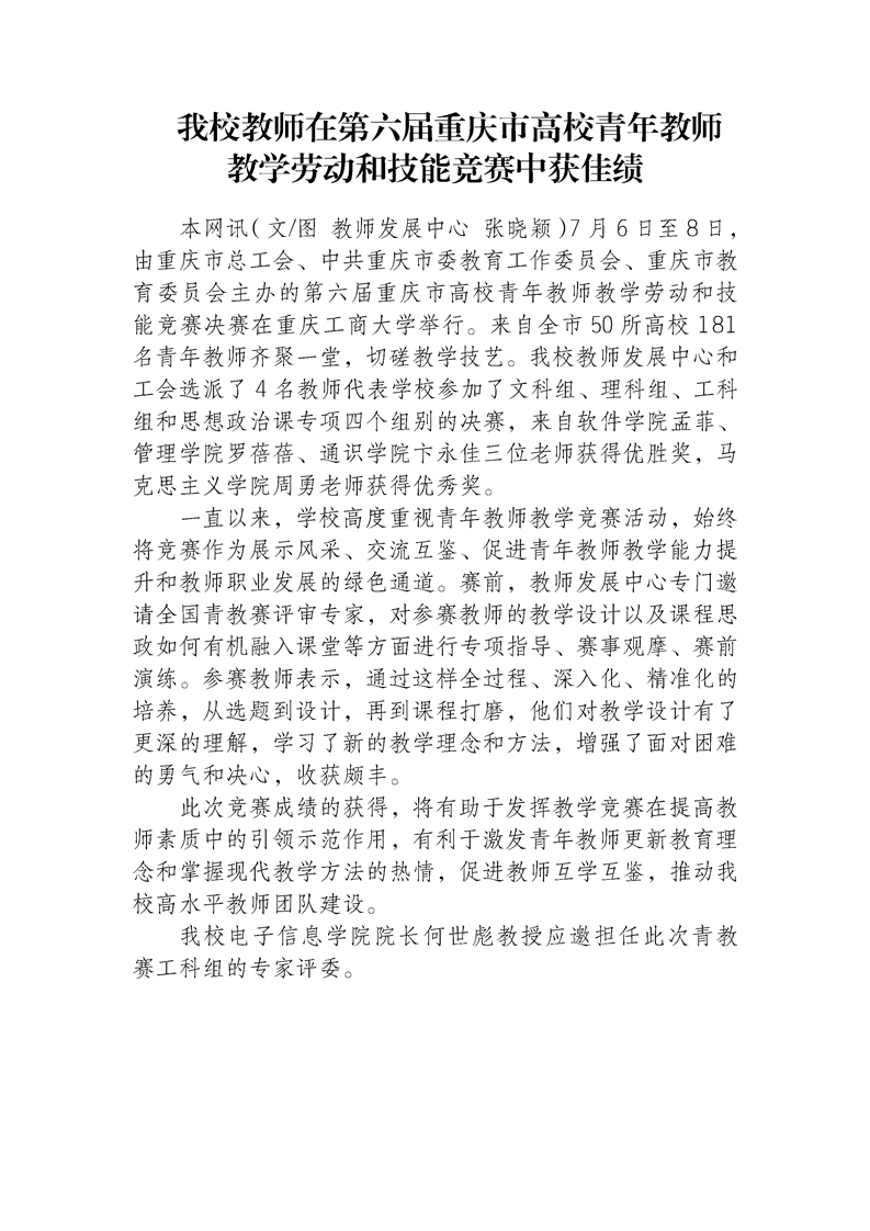 我们教师在第六届重庆市高校青年教师教学劳动和技能竞赛中获佳绩