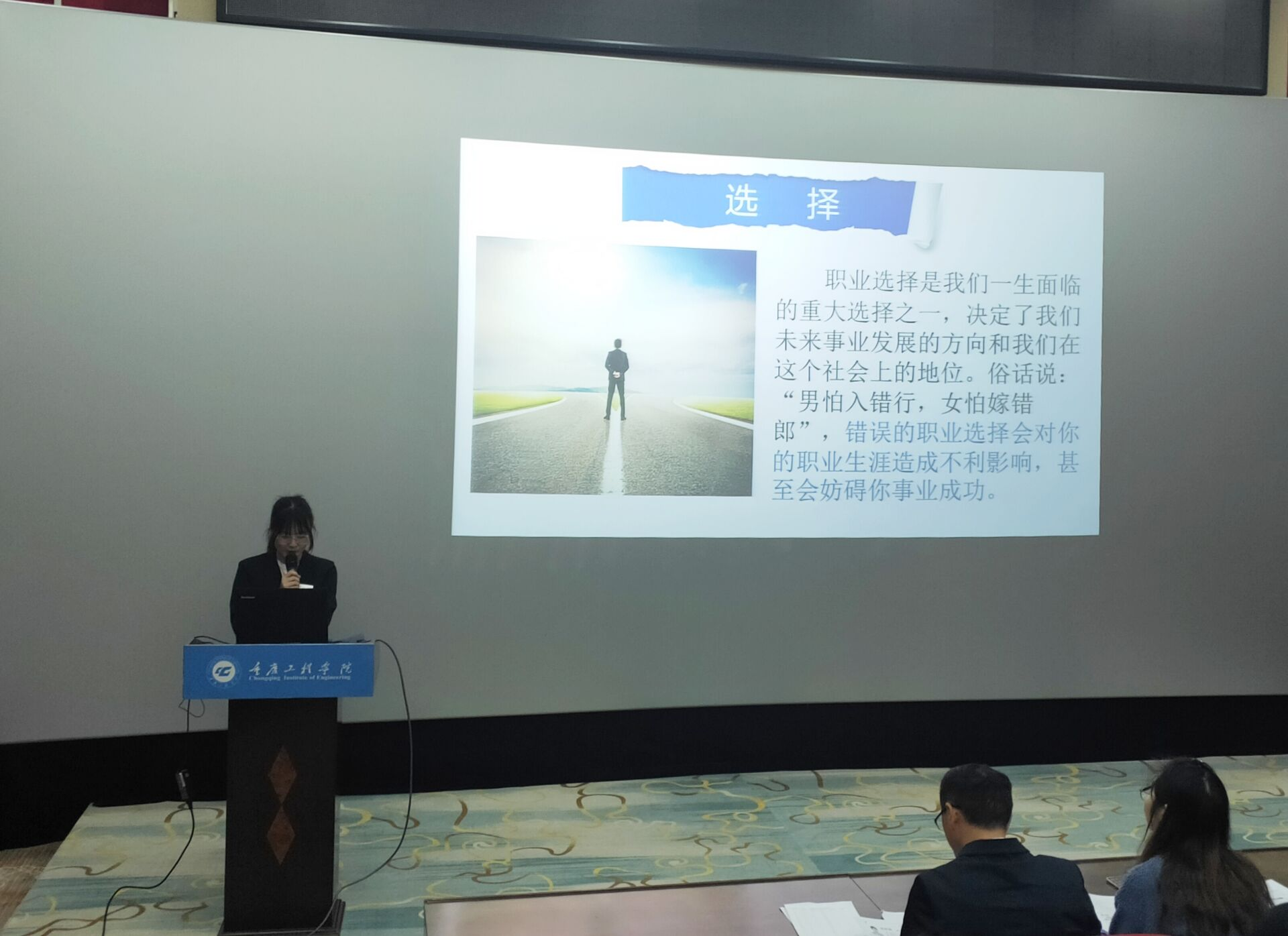 比赛中,各位选手围绕职业生涯规划中的求职目标,重点介绍自我和MBTI职业性格测试等方面内容向大家展示出自己的优劣势以及就业的前景目标。评委根据选手的个人形象,语言表达,PPT制作,以及核心职业能力,同时根据实际表现进行综合打分。