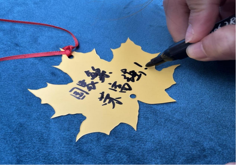 讲解完后,同学们满怀敬意,在卡片上写下自己对祖国对家人对未来的美好期许,将载满愿望的卡片寄存在了心愿树上,他们的脸上有坚定,眼中闪烁着希望。