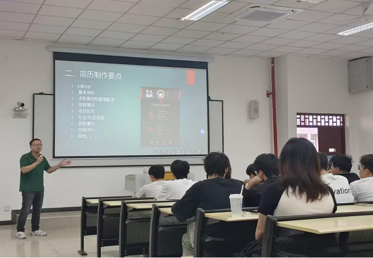 (文/图 软件学院 徐莉清)为助力软件学院22级数字媒体技术系学生精准把握求职核心,提升就业竞争力,软件学院星火燎原辅导员工作室于2025415日晚在第六教学楼6202教室开展“巧构简历,智绽锋芒”简历制作专题讲座特邀请数字媒体技术系主任石磊老师担任主讲嘉宾。本次活动紧密围绕数字媒体技术专业学生的求职需求,聚焦简历制作底层逻辑,通过系统性指导帮助学生深度挖掘个人优势,以精准化表达增强简历说服力,助力学生在求职市场中脱颖而出。