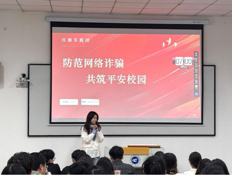 (文/图 软件学院 冯婷/乔丹妮)为提升学生反诈防骗意识,守护校园财产安全,软件学院红雁实践团于20251023日在6201开展了“防范网络诈骗 共筑平安校园”活动。