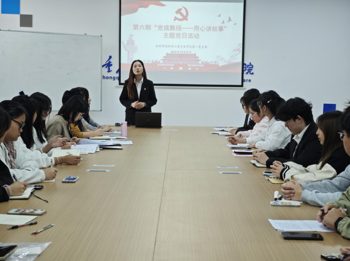 (文/图 软件学院 陈代玉)为增强党性教育,树立榜样力量,激发党员的爱国情怀与奋斗精神。软件学院软件工程专业学生第一党支部于20251022日在7506会议室特举办第六期“党旗飘扬——用心讲故事”主题党日活动,在校师生党员(预备党员)、部分发展对象、部分入党积极分子参与。