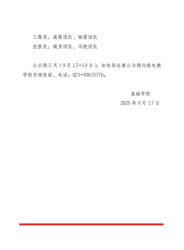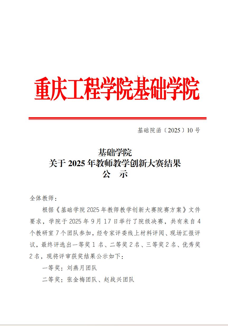 关于2025年教师教学创新大赛结果公示