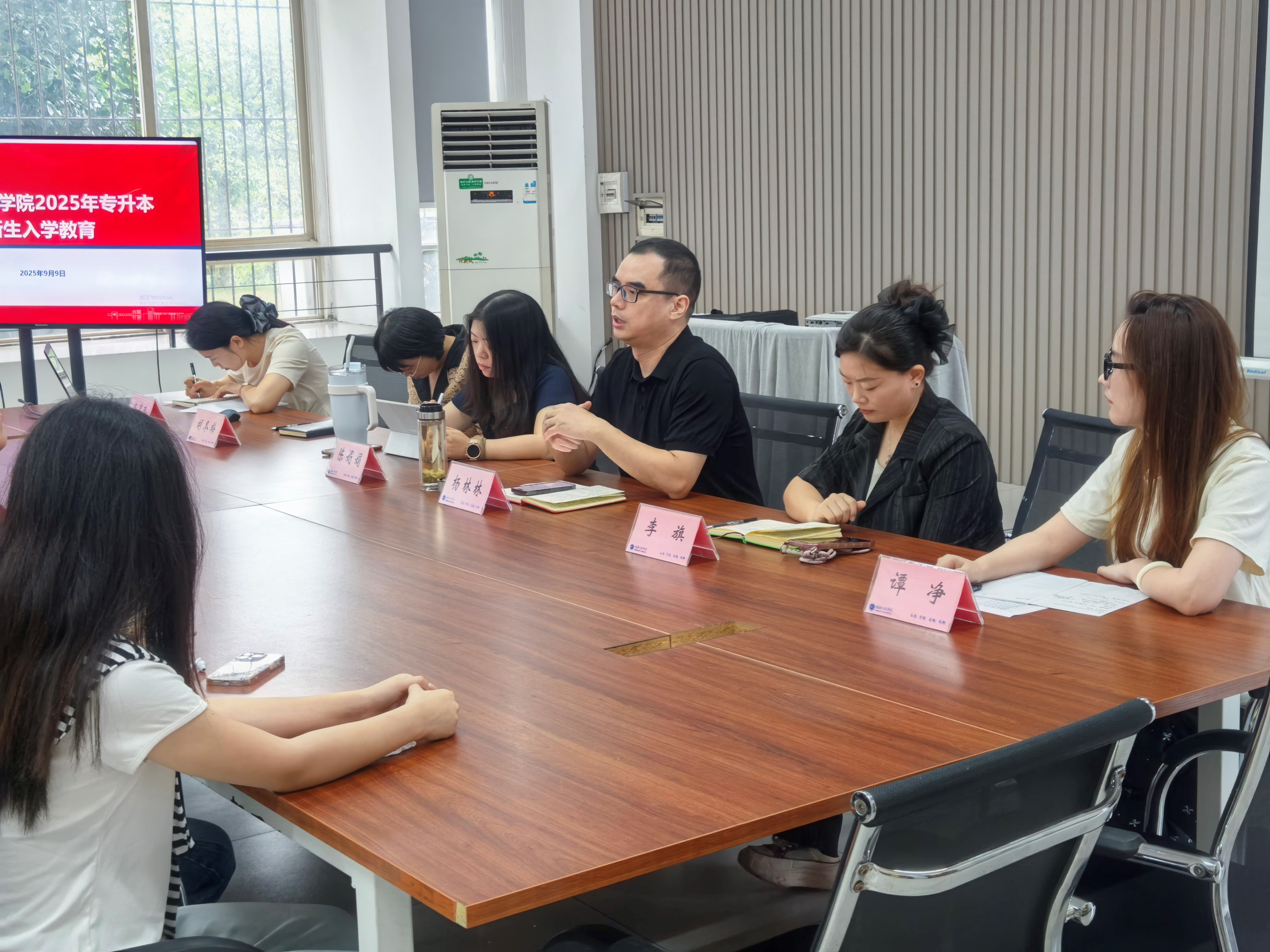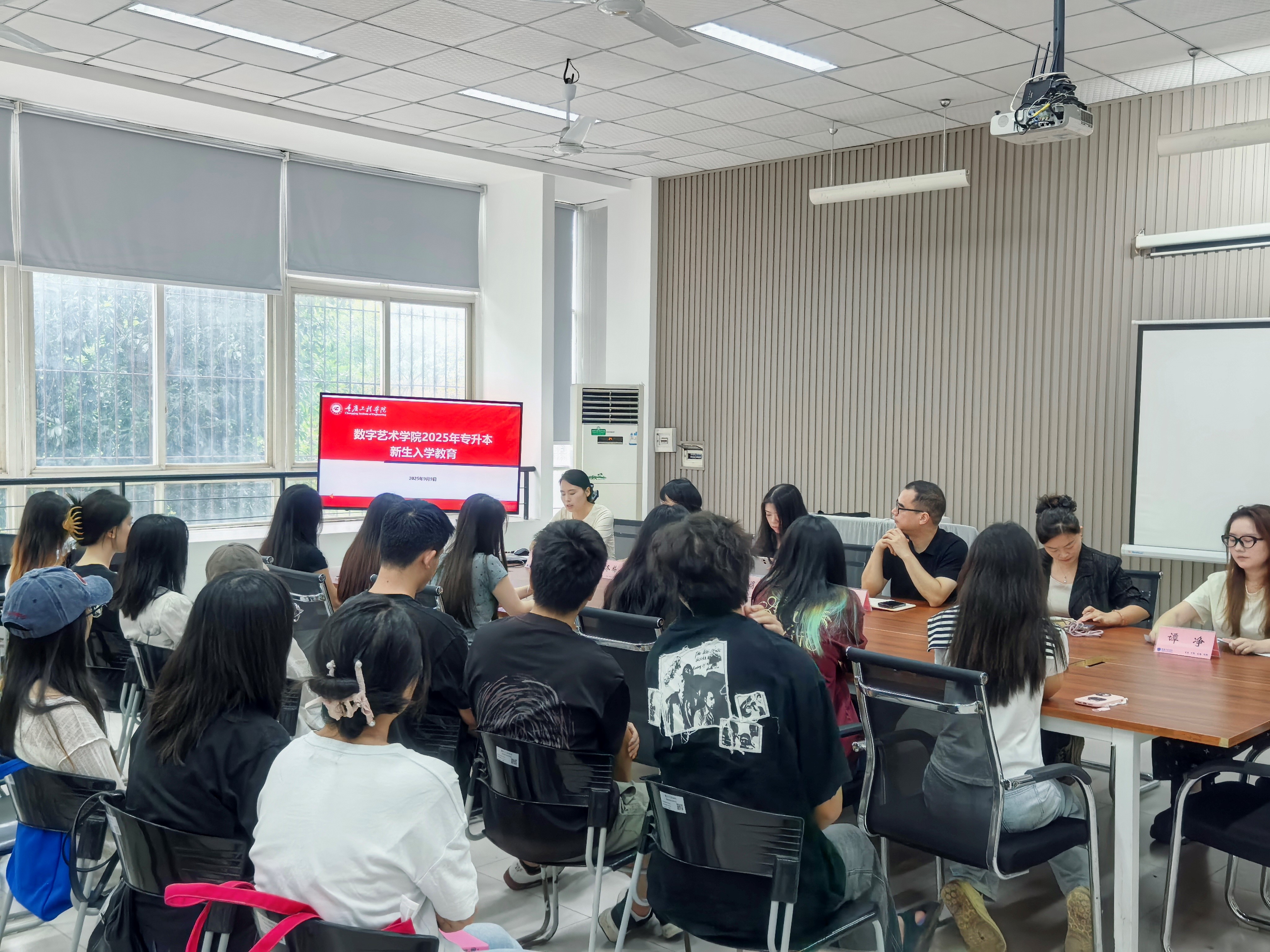 本网讯(文/图 学生科)为帮助2025级专升本同学快速适应从专科到本科的学习模式,了解培养目标,增强归属感与凝聚力,9月9日,学院在5207会议室召开专升本新生入学教育会。副院长及专业带头人杨林林、设计系主任陈娟娟、影视动画系副主任及电影制作专业负责人李旗、学生科杨道珍、教学秘书胡冬梅、辅导员谭净和25名专升本同学参与此次会议。