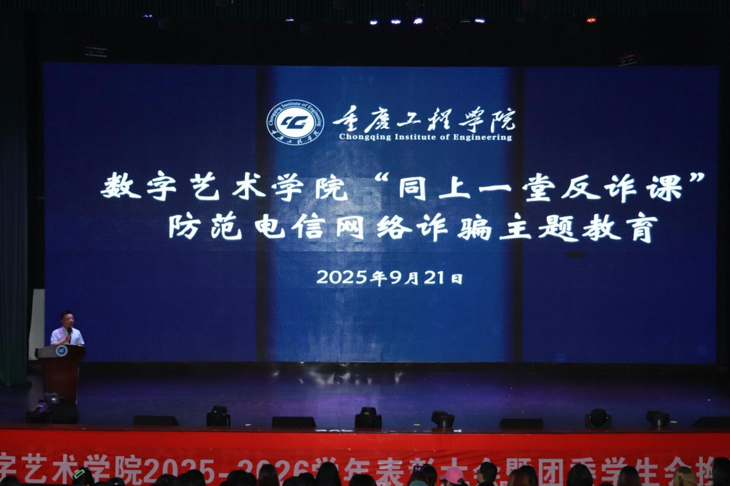 本网讯(图/文 学生科)为进一步提升全院师生的反诈防骗意识和识骗能力,守护财产安全。于9月21日,党总支书记孙建、全体辅导员和2023、2024级全体学生在学术报告厅开展数字艺术学院“同上一堂反诈课”防范电信网络诈骗主题教育。
